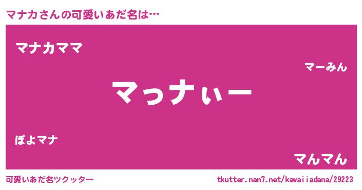 | ヘコむあだ名 | 『マナっちょ』『マナカ(爆)』『豆乳』 |