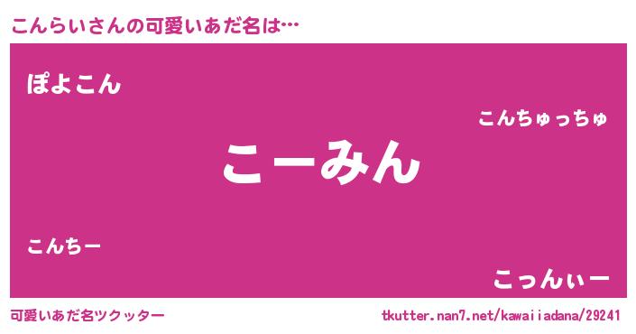| ヘコむあだ名 | 『こんを』『豆乳』『こんにゅー』 |