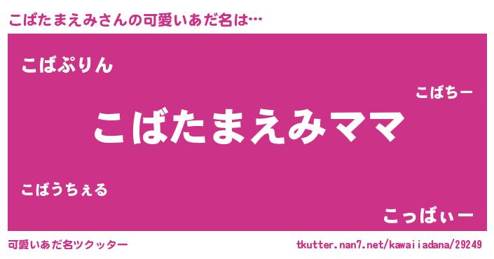 | ヘコむあだ名 | 『こばたまえみ(爆)』『こばっ子』 |