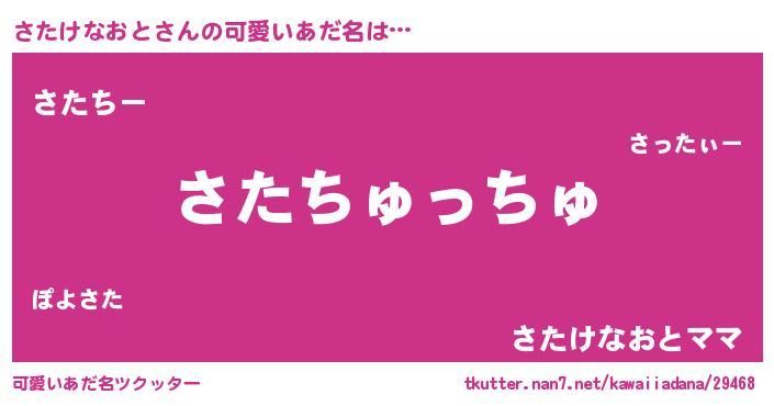 | 男性向けラノベタイトル風あだ名 | 『ノーゲーム・ノーサタケナオト』 |