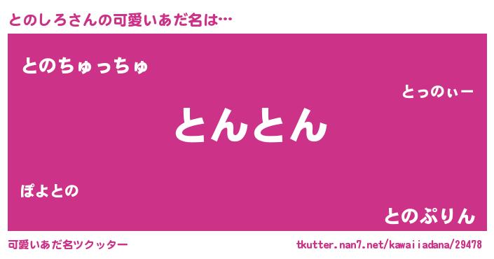 | 男性向けラノベタイトル風あだ名 | 『とのしろの憂鬱』『トノシロスレイヤー』 |