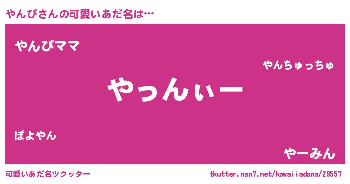 | 女子向けラノベタイトル風あだ名 | 『やんぴの卵を拾いまして』 |