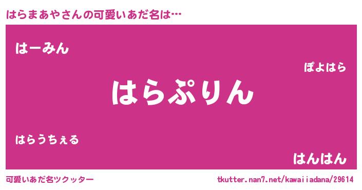 | 恥ずかしいあだ名 | 『プリティーはらまあや』『はらちん』 |