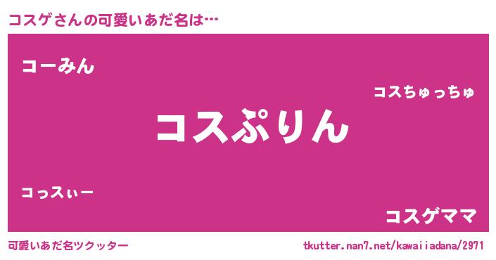 | ヒーロー風カッコイイあだ名 | 『ネオコスゲ』『愛の使者コスゲ』 |