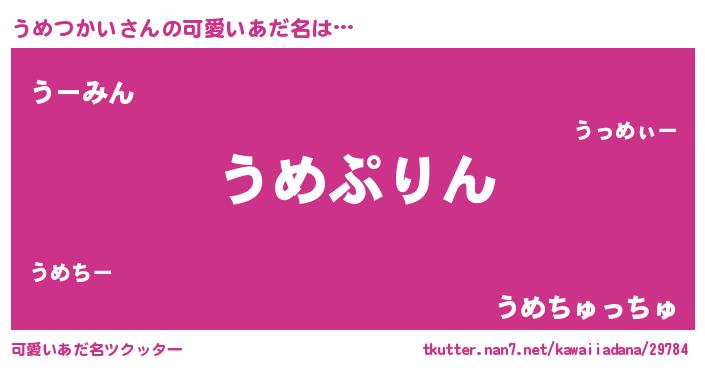 | ヘコむあだ名 | 『うめっ子』『豆乳』『うめふぇ~』 |