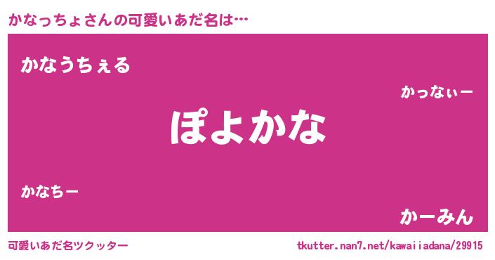 | 男性向けラノベタイトル風あだ名 | 『この素晴らしい世界にかなっちょを!』 |