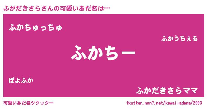 | 意味不明あだ名 | 『ふかだきさらフォーエバー』 |