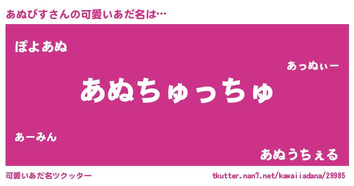 | 女子向けラノベタイトル風あだ名 | 『あぬびす恋絵巻』『あぬびす様がみてる』 |