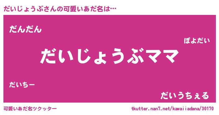 ヘコむあだ名 | 『だいじょうぶ(笑)』『だいもー』 |