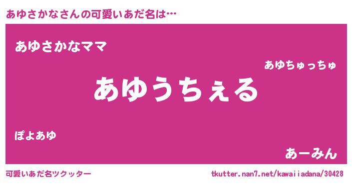 | 男性向けラノベタイトル風あだ名 | 『Re:あゆさかなから始める異世界生活』 |