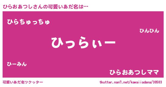 | ヒーロー風カッコイイあだ名 | 『黄金騎士ヒラ』『愛の使者ひらおあつし』 |