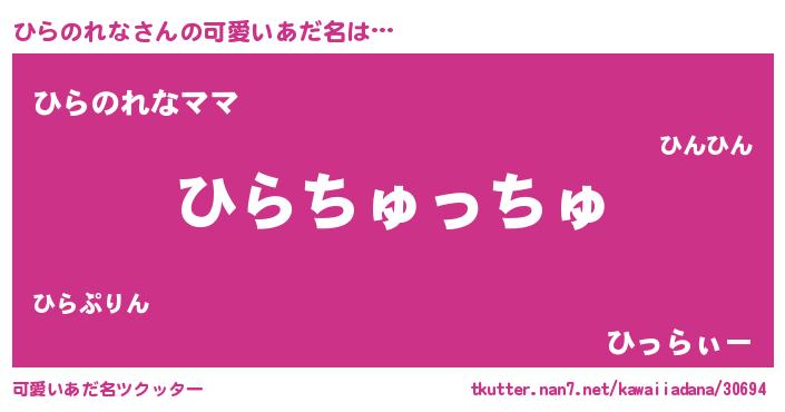 | ヘコむあだ名 | 『ひらのれな(遠い目)』『ひらぷりん』 |
