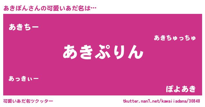 | 男性向けラノベタイトル風あだ名 | 『アキポンスレイヤー』 |