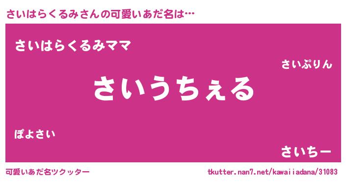 | 意味不明あだ名 | 『自称さいはらくるみ』 |