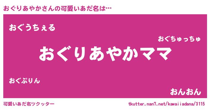 | ヘコむあだ名 | 『おぐりあやか(笑)』『おぐっふぃ~』 |