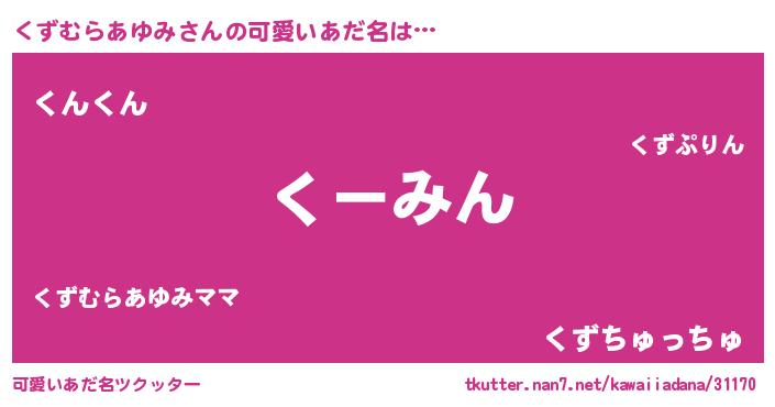 | 恥ずかしいあだ名 | 『プリティーくずむらあゆみ』『くずちん』 |