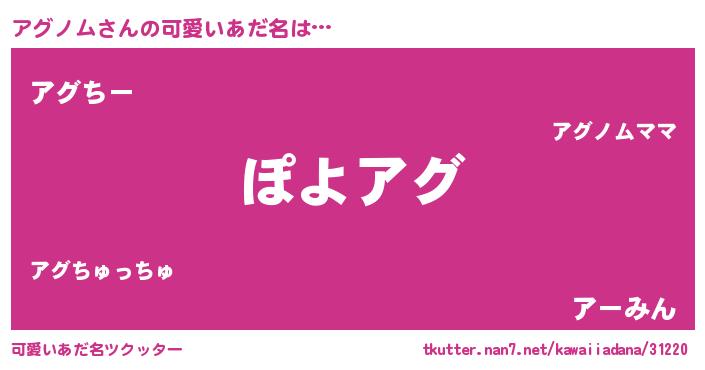 | ヒーロー風カッコイイあだ名 | 『仮面アグダー』『ウルトラアグノムマン』 |