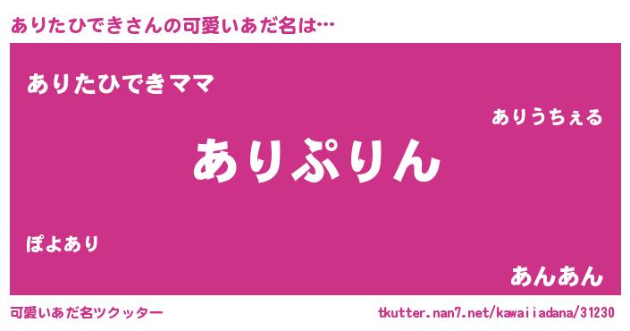 | ヘコむあだ名 | 『ありたひでき(笑)』『ありもー』 |