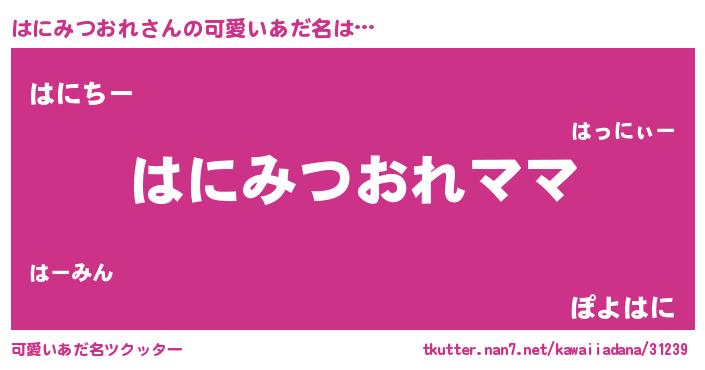 | 男性向けラノベタイトル風あだ名 | 『はにみつおれという概念が存在しない退屈な世界 』 |