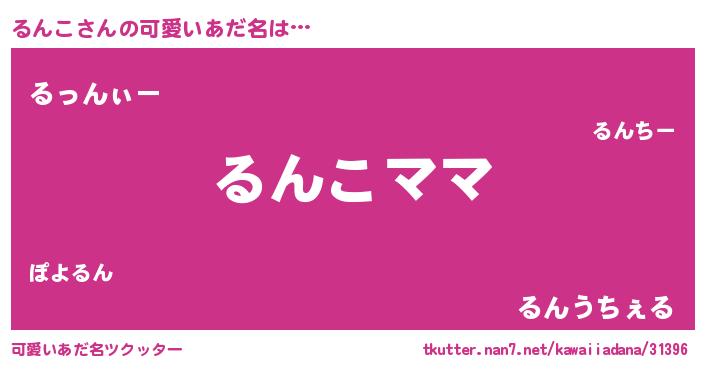 | 女子向けラノベタイトル風あだ名 | 『るんこの契約王妃』『るんこ様がみてる』 |