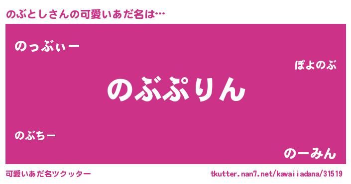| 男性向けラノベタイトル風あだ名 | 『のぶとし~年齢イコール彼女いない歴の魔法使い~』 |