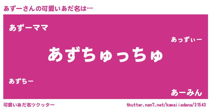 | 女子向けラノベタイトル風あだ名 | 『あずー恋絵巻』『あずーの契約王妃』 |