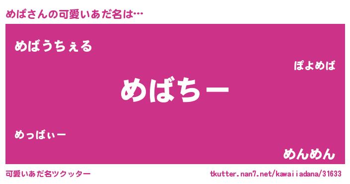 | 意味不明あだ名 | 『めばフォーエバー』『自称めば』 |