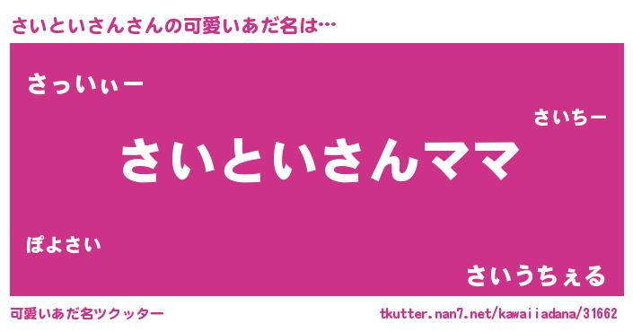 | ヘコむあだ名 | 『さいといさん(笑)』『さいお』 |