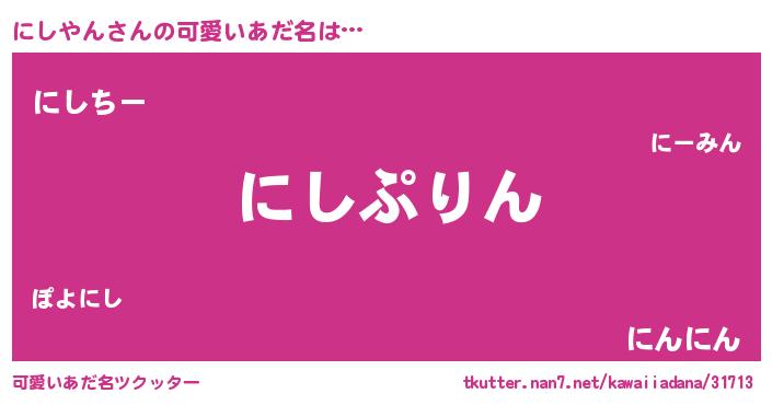 | 男性向けラノベタイトル風あだ名 | 『ニシヤンスレイヤー』 |