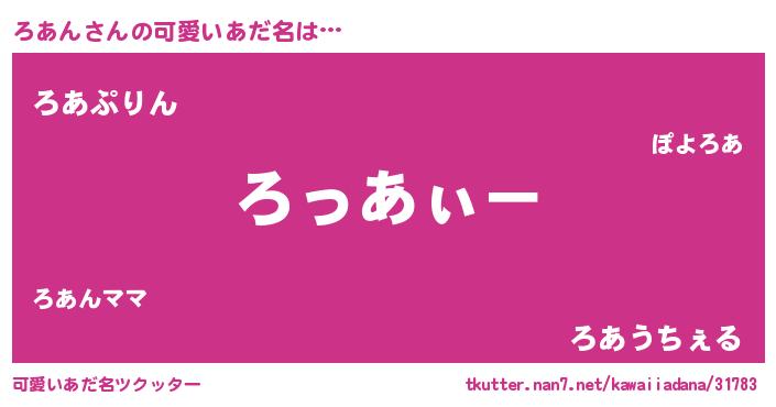 | 意味不明あだ名 | 『とにかく怪しいろあん』『自称ろあん』 |