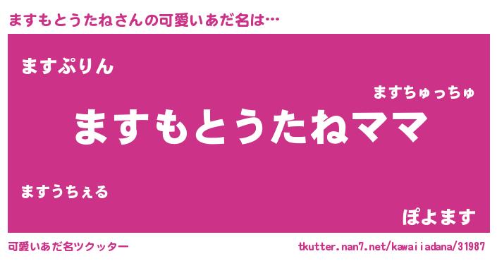 | 男性向けラノベタイトル風あだ名 | 『ますもとうたねに滅ぼされるだけの簡単なお仕事です』 |