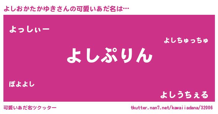 | 女子向けラノベタイトル風あだ名 | 『よしおかたかゆきの玉の輿計画!』 |