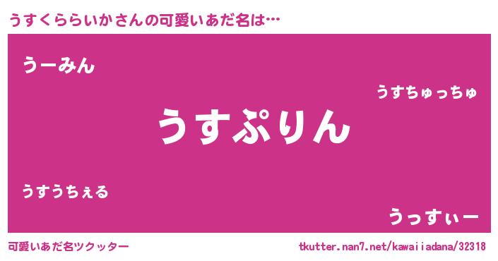 | 欧米人風あだ名 | 『トリンドルうすくららいか』 |