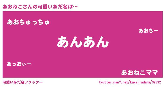 | 意味不明あだ名 | 『ペロリンあおねこ』『永久保存あおねこ』 |