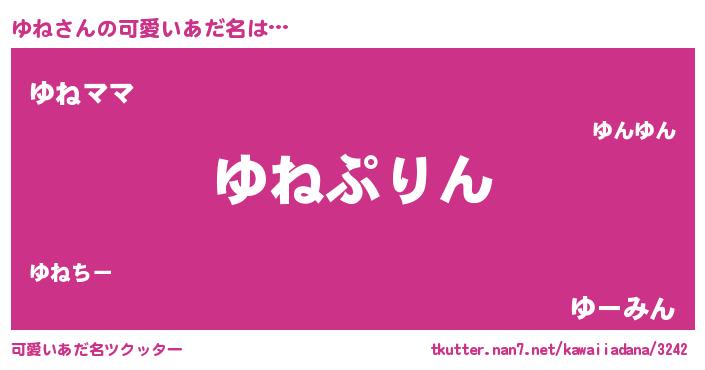 | ヘコむあだ名 | 『ゆね(苦笑)』『ゆねっふぃ~』 |