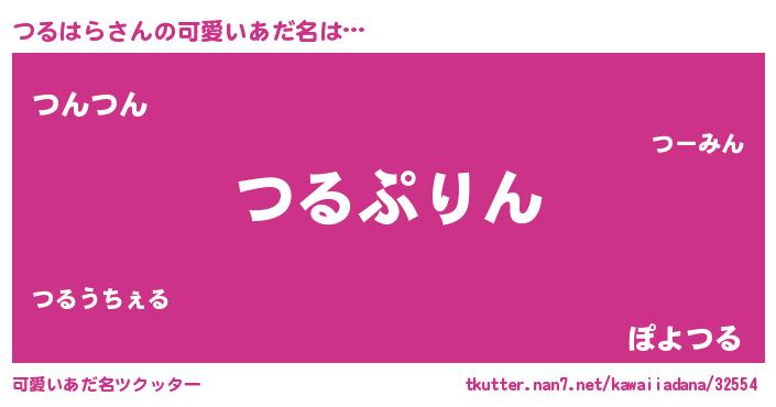 | 男性向けラノベタイトル風あだ名 | 『つるはら~年齢イコール彼女いない歴の魔法使い~』 |