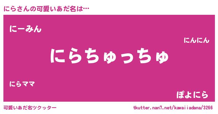 | 意味不明あだ名 | 『眠気覚ましガムにら味』『ペロリンにら』 |