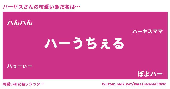 | 男性向けラノベタイトル風あだ名 | 『Re:ハーヤスから始める異世界生活』 |