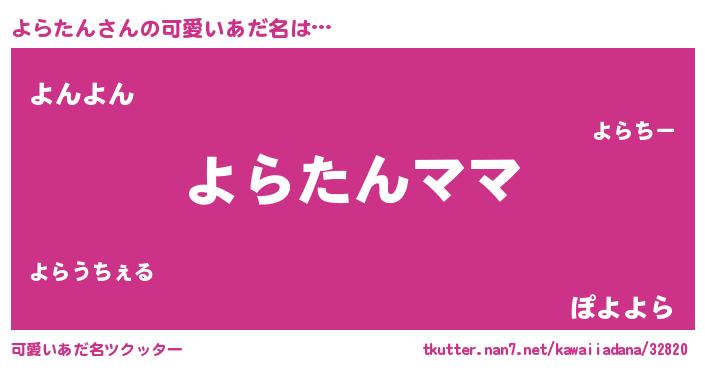 | 意味不明あだ名 | 『永久保存よらたん』『ペロリンよらたん』 |