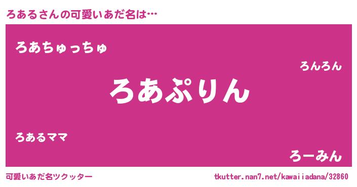 | ヘコむあだ名 | 『ろあもー』『ろある(爆)』『豆乳』 |
