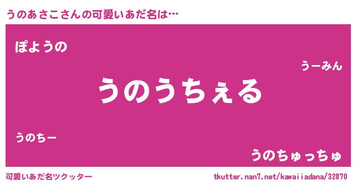 | 男性向けラノベタイトル風あだ名 | 『Re:うのあさこから始める異世界生活』 |