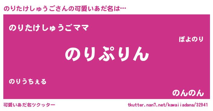 | 男性向けラノベタイトル風あだ名 | 『転生したらのりたけしゅうごだった件』 |