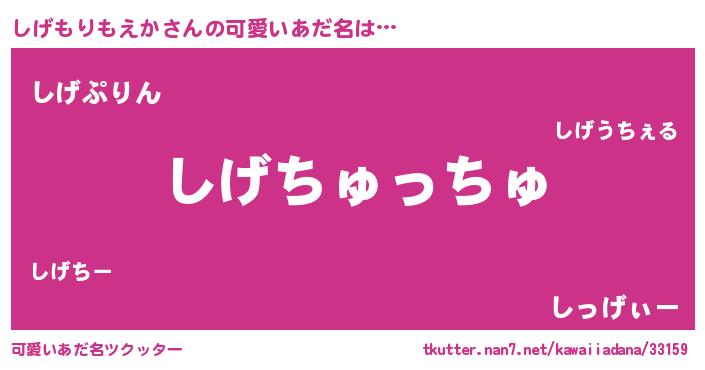 | 男性向けラノベタイトル風あだ名 | 『おまえをオタクにしてやるから、俺をしげもりもえかにしてくれ! 』 |