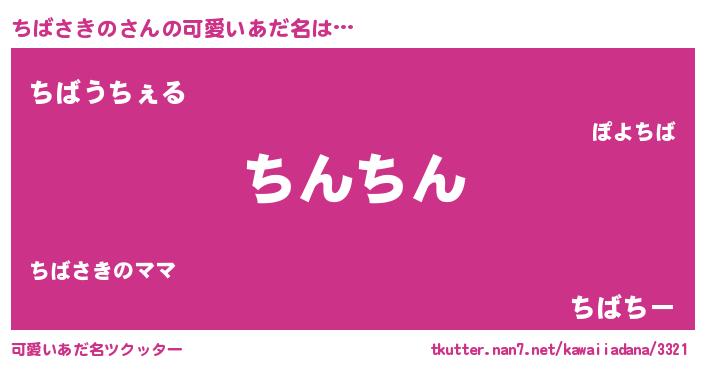 | 2回繰り返すあだ名 | 『ちばちば』『まじまじ』『ちちばば』 |
