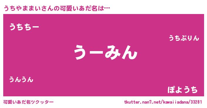 | 恥ずかしいあだ名 | 『うちっちょ』『プリティーうちやままい』 |