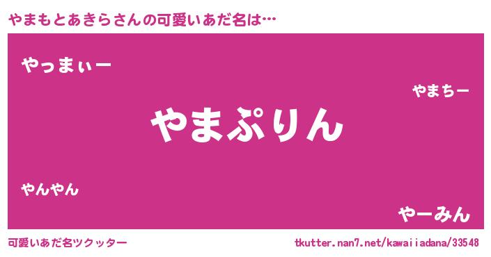 | 男性向けラノベタイトル風あだ名 | 『やまもとあきら~年齢イコール彼女いない歴の魔法使い~』 |
