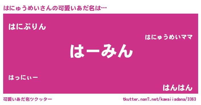 | 恥ずかしいあだ名 | 『プリティーはにゅうめい』『はにちん』 |