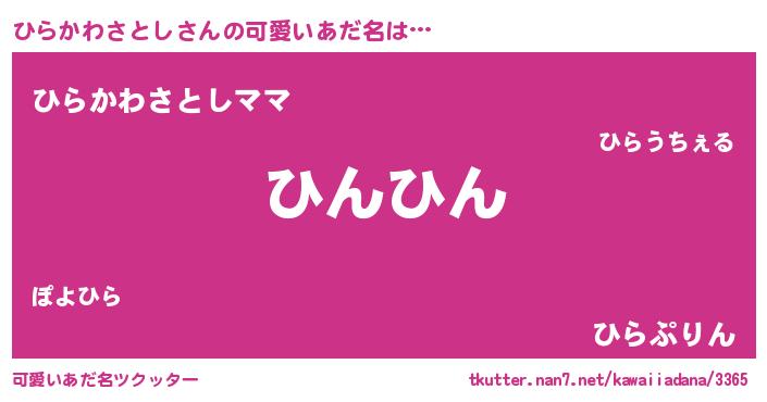 | 恥ずかしいあだ名 | 『プリティーひらかわさとし』『ひらちん』 |