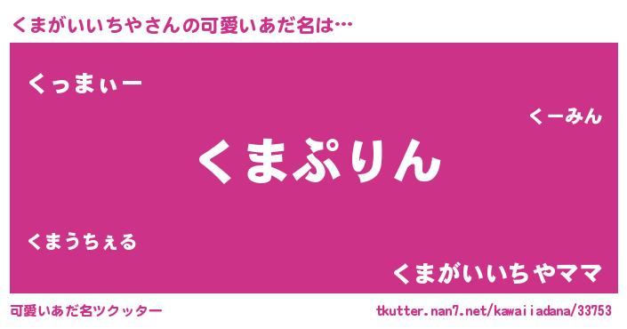 | 料理風あだ名 | 『くまがいいちやごはん』 |