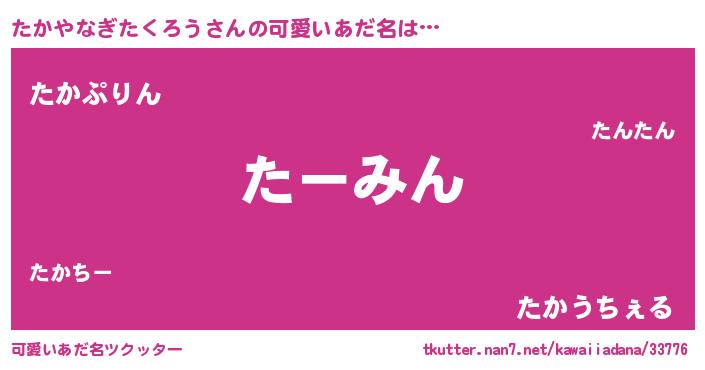 | ヒーロー風カッコイイあだ名 | 『最強戦士タカヤナギタクロウ』 |